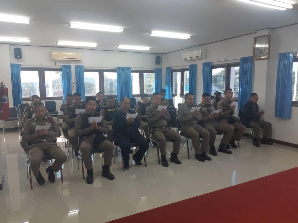 วันนี้ 21 พ.ย. 2566 ภายใต้การอำนวยการของ พ.ต.อ.เกรียงศักดิ์ ตงศิริ ผกก.สภ.เชียงของ พ.ต.ท.เด่นชัย ศรีสุข รอง ผกก.ป.ฯ พ.ต.ท.กิตติพงษ์ รักษาพันธ์ รอง ผกก.สืบสวน พ.ต.ท.ชัยวัฒน์ มีมุ่งธรรม สวป พร้อมข้าราชการตำรวจ สภ.เชียงของ ร่วมพิธี ถวายพระพรด้วยการตั้งจิตอธิษฐาน สวดมนต์บูชาธรรมตามบทสวดโพชฌังคปริตร ถวายเป็นพระราชกุศลแด่ สมเด็จพระเจ้าลูกเธอ เจ้าฟ้าพัชรกิติยาภา นเรนทิราเทพยวดี กรมหลวงราชสาริณีสิริพัชร มหาวัชรราชธิดา เพื่อเป็นการแสดงความจงรักภักดีและสำนึกในพระมหากรุณาธิคุณ ถวายพระพรให้พระองค์ทรงหายจากพระอาการประชวรในเร็ววัน ณ สถานีตำรวจภูธรเชียงของ อ.เชียงของ จว.เชียงราย และประชุมวิเคราะห์อาชญากรรมประจำสัปดาห์เพื่อรับทราบปัญหาและวางแผนในการแก้ไขปัญหาที่เกิดขึ้นในรอบสัปดาห์ที่ผ่านมา ณ ห้อง ศปก.สภ.เชียงของ