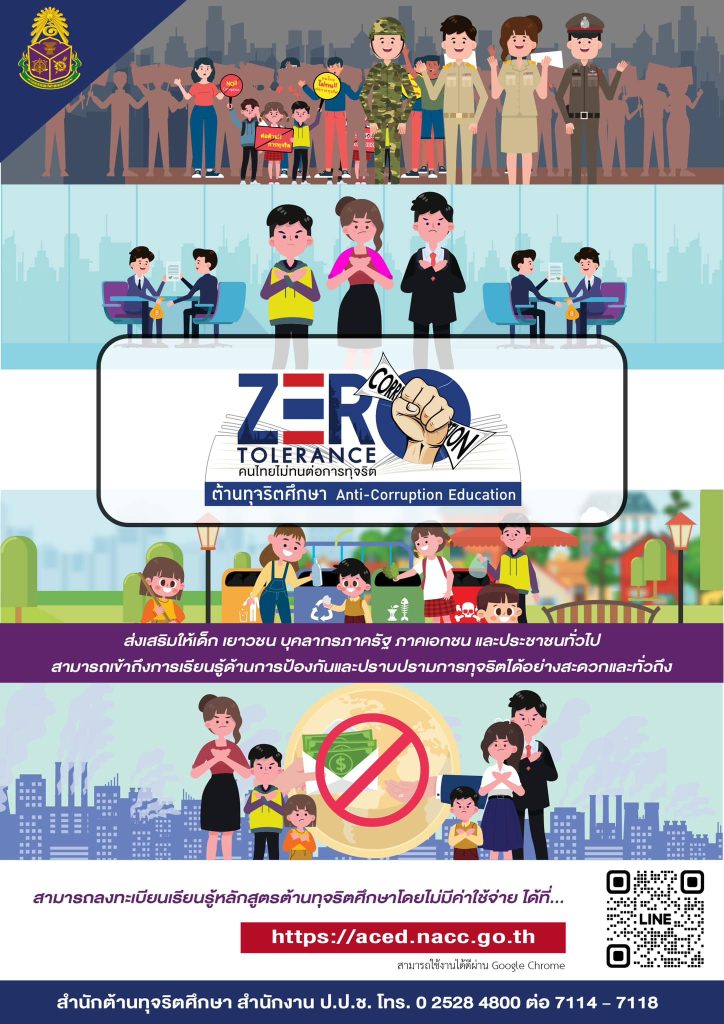ระบบแพลตฟอร์มต้านทุจริตศึกษา เรียนออนไลน์ฟรี 9 กันยายน 2024 โดย admin / ข่าวประชาสัมพันธ์ ระบบแพลตฟอร์มต้านทุจริตศึกษา เรียนออนไลน์ฟรี ได้ใบประกาศ สำนักงาน ป.ป.ช. ขอเชิญชวนนักเรียน นักศึกษา และผู้ที่สนใจ สมัครและลงทะเบียนเรียนหลักสูตรต้านทุจริตศึกษาในรูปแบบออนไลน์ผ่านทาง เว็บไซต์ https://aced.nacc.go.th โดยผู้ที่เข้าเรียนและทำการทดสอบผ่านตามเกณฑ์ที่กำหนดจะได้รับใบประกาศนียบัตรออนไลน์