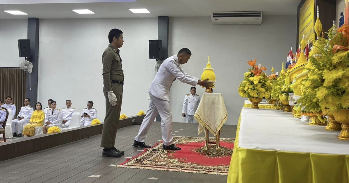 วันพระบาทสมเด็จพระพุทธ ยอดฟ้าจุฬาโลกมหาราช และวันที่ระลึกมหาจักรีบรมราชวงศ์ ประจำปี 2567 24 เมษายน 2024 โดย admin / ข่าวภารกิจผู้บังคับบัญชา สภ.เชียงของ ภ.จว.เชียงราย วันนี้ 6 เม.ย. 67 เวลา 07.00 น. โดยการอำนวยการของ พ.ต.อ.เกรียงศักดิ์ ตงศิริ ผกก.สภ.เชียงของ มอบหมายให้ พ.ต.ท.ชัยวัฒน์ มีมุ่งธรรม รอง ผกก.ป. ร่วมร่วมพิธีถวายราชสักการะเนื่องใน “วันพระบาทสมเด็จพระพุทธ ยอดฟ้าจุฬาโลกมหาราช และวันที่ระลึกมหาจักรีบรมราชวงศ์ ประจำปี 2567 ณ ห้องประชุมเชียงของดาวเจ็ดแฉก อาคารศูนย์บริการประชาชนแบบเบ็ดเสร็จ (One Stop Service : OSS) อำเภอเชียงของ จังหวัดเชียงราย