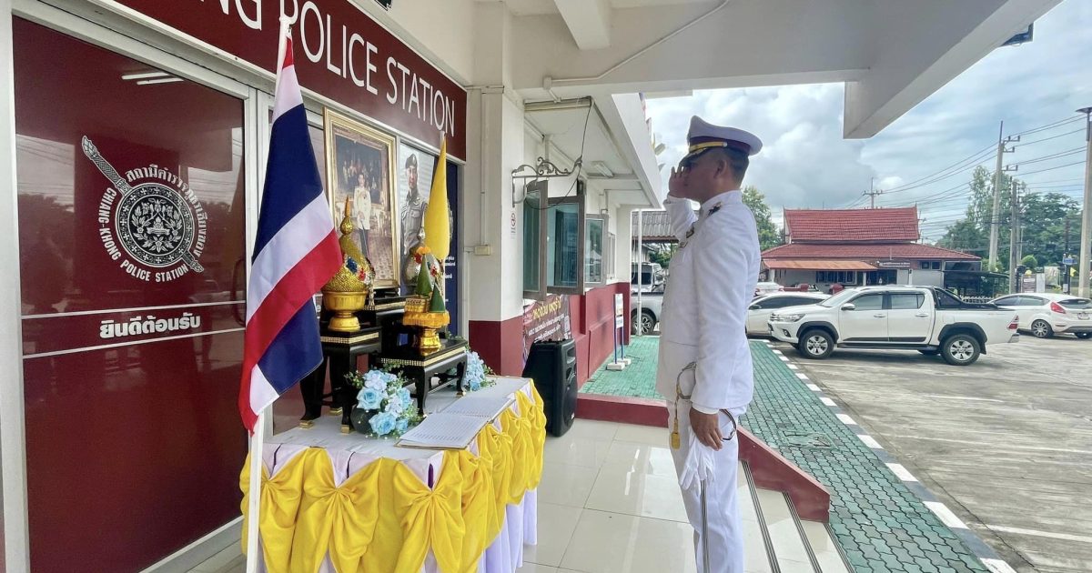 สภ.เชียงของ จัดพิธีถวายพระพรชัยมงคล พิธีถวายสัตย์ปฏิญาณเพื่อเป็นข้าราชการที่ดีและพลังของแผ่นดินและพิธีลงนามถวายพระพรเนื่องในโอกาสพระราชพิธีมหามงคลเฉลิมพระชนมพรรษา ๖ รอบ ๒๘ กรกฎาคม ในวันอาทิตย์ที่ 28 กรกฎาคม ๒๕๖๗ 23 สิงหาคม 2024 โดย admin / ข่าวภารกิจผู้บังคับบัญชา สภ.เชียงของ ภ.จว.เชียงราย วันที่ 28 กรกฎาคม 2567 นำโดย พ.ต.อ.เกรียงศักดิ์ ตงศิริ ผกก.สภ.เชียงของ พร้อมข้าราชการตำรวจ สภ.เชียงของ จัดพิธีถวายพระพรชัยมงคล พิธีถวายสัตย์ปฏิญาณเพื่อเป็นข้าราชการที่ดีและพลังของแผ่นดินและพิธีลงนามถวายพระพรเนื่องในโอกาสพระราชพิธีมหามงคลเฉลิมพระชนมพรรษา ๖ รอบ ๒๘ กรกฎาคม ในวันอาทิตย์ที่ 28 กรกฎาคม ๒๕๖๗ ณ ลานหน้า สภ.เชียงของ