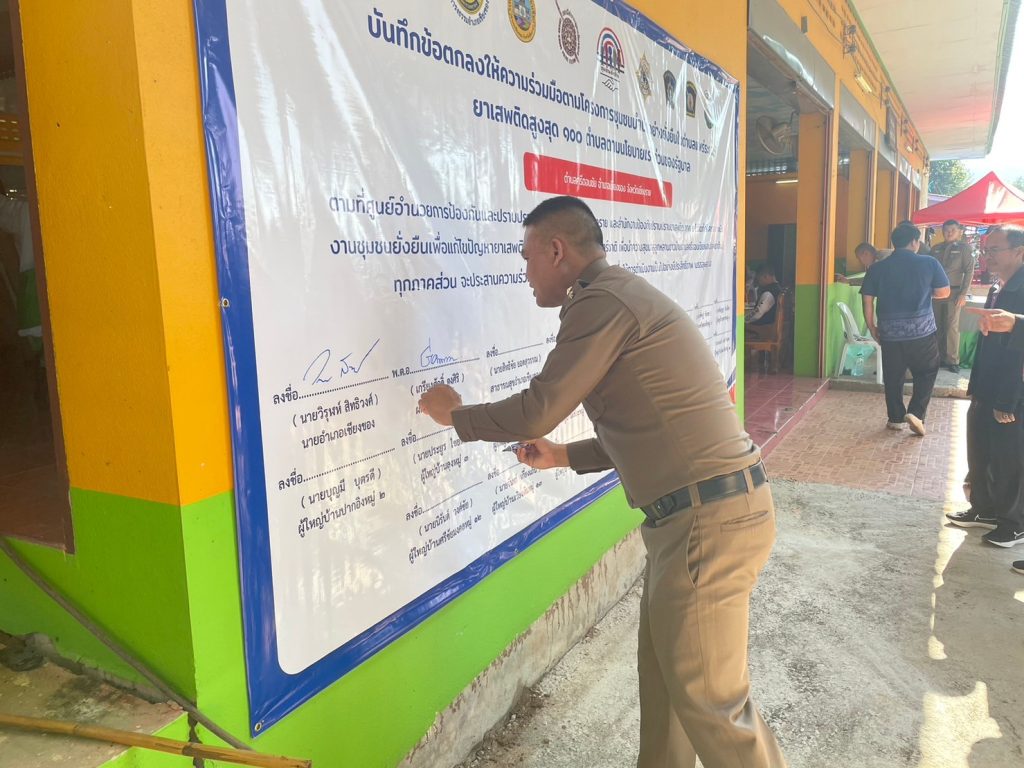 ร่วมพิธีเปิดโครงการชุมชนบำบัดอย่างยั่งยืนในตำบลแพร่ระบาดยาเสพติดสูงสุด 100 ตำบล ร่วมกับภาคีเครือข่าย และร่วมลงนาม MOU โดยมี นายวิรุฬห์ สิทธิวงศ์ นายอำเภอเชียงของ เป็นประธานในพิธี ณ ห้องประชุมโรงเรียนชุมชนบ้านศรีดอนชัย ตำบลศรีดอนชัย อำเภอเชียงของ จังหวัดเชียงราย