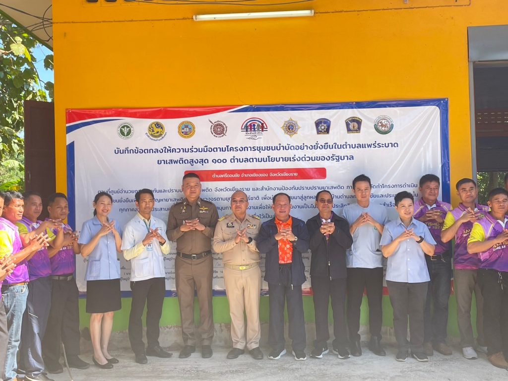 ตามโครงการชุมชน บำบัดอย่างยั่งยืนในตำบลแพร่ระบาดยาเสพติดสูงสุด 100 ตำบล ตามนโยบายเร่งด่วนของรัฐบาล ตำบลศรีดอนชัย อำเภอเชียงของ จังหวัดเชียงราย