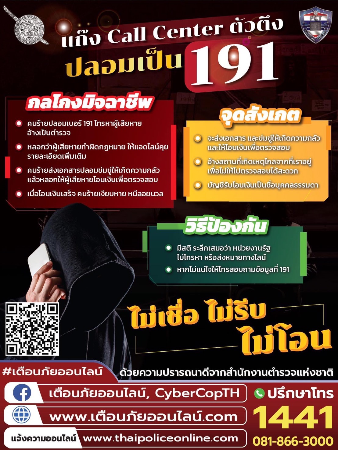 👮🏻♀️ตำรวจไซเบอร์เตือนภัย📢แก๊ง Call Center ตัวตึง ปลอมเป็น 191 👉กลโกงของคนร้าย : 👀ข้อสังเกต : 🚧ข้อคว