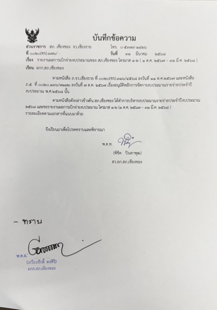 รายงานผลการใช้จ่ายงบประมาณ ปี 2568